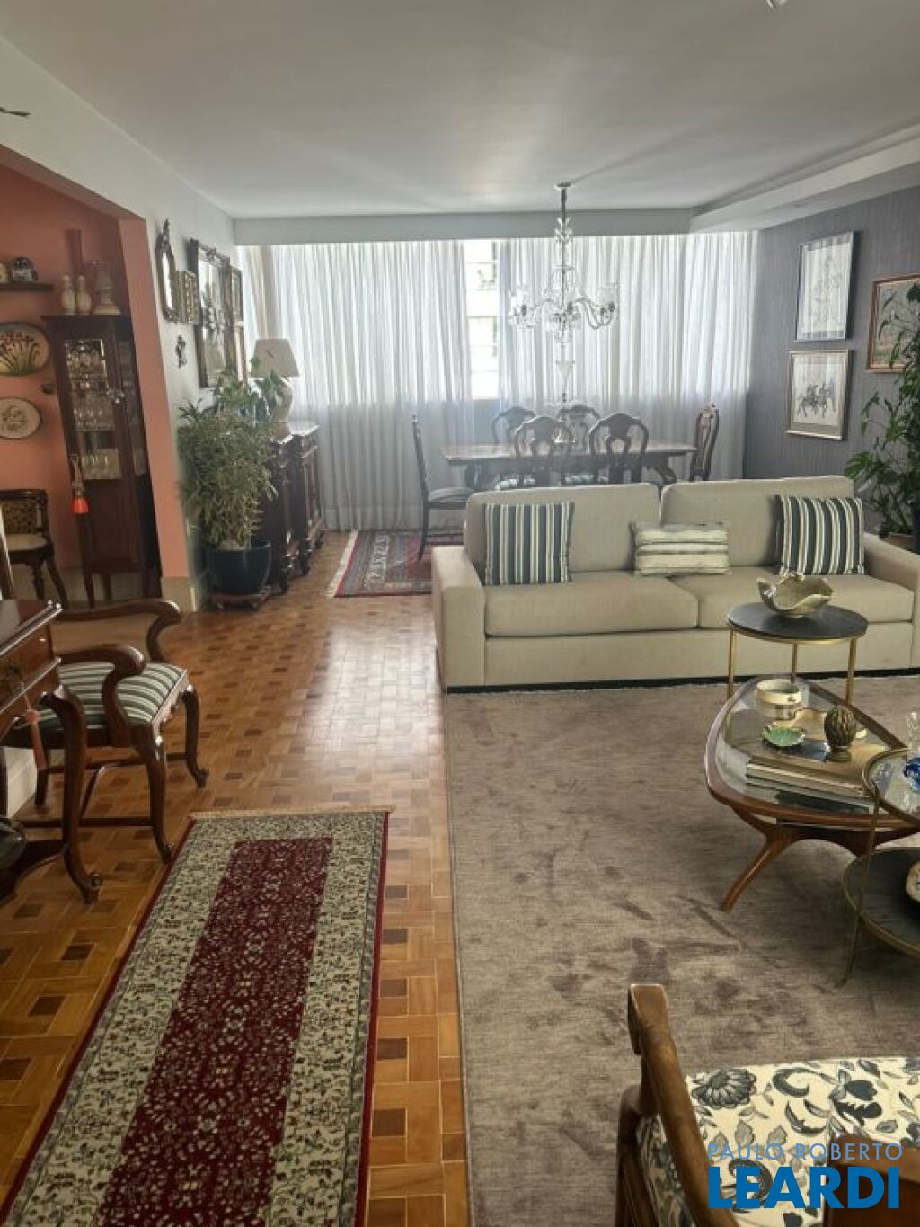 Apartamento com 173m² com 3 dormitórios sendo 1 suíte, banheiro, lavabo, cozinha aberta integrada com copa, área de serviço e 1 vaga fixa de garagem. É um por andar com janelas amplas o que torna o ambiente claro e arejado. Sol da manhã nos quartos e a tarde na sala. Piso em tacos de madeira. Ar condicionado num quarto e na suíte. Há 4 anos feita pequena reforma. Pronto para mudar. Venha conhecer com a LEARDI. Imobiliária com mais de 100 anos de existência.