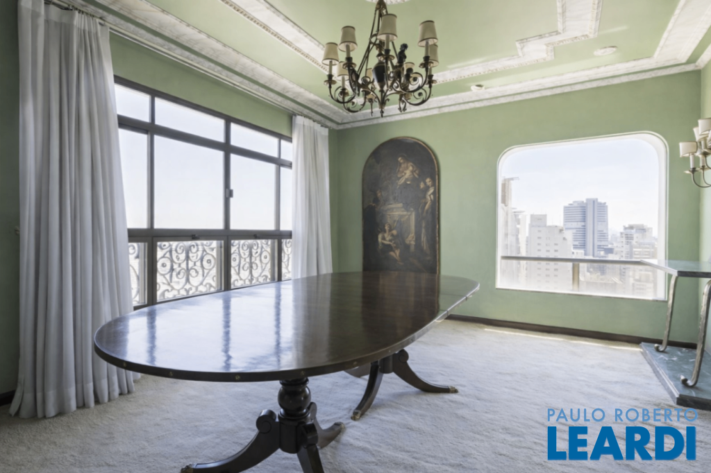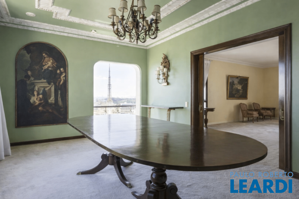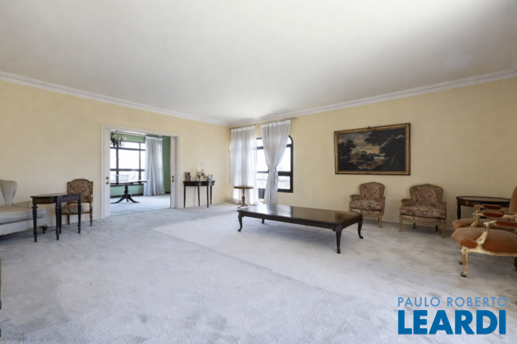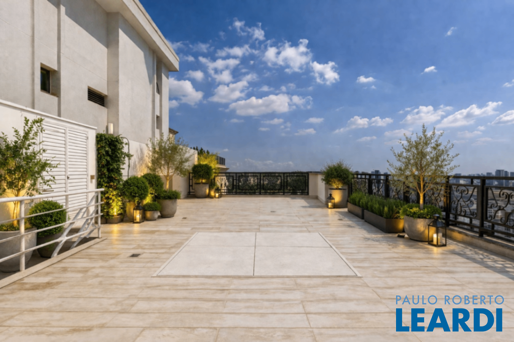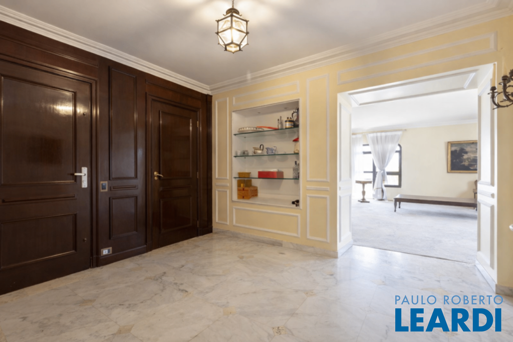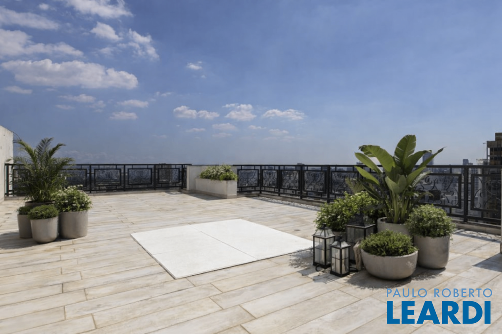 Cobertura única nos Jardins, daquelas que impressionam logo no primeiro olhar. O grande destaque é sua vista 360°, que traz uma sensação rara de espaço, luz e exclusividade. São três andares, todos atendidos por elevador privativo e escadas internas, com uma planta que combina imponência e potencial. No andar intermediário, onde ficam a sala e a cozinha principal, são 289 m² para transformar do seu jeito e criar ambientes absolutamente especiais. No piso inferior está a área íntima, com 5 suítes. A suíte master é um capítulo à parte: maravilhosa, com varanda, dois closets, dois banheiros e ainda uma cozinha de apoio. No pavimento superior, a atmosfera é de uma verdadeira casa nas alturas: um grande salão, área gourmet, sauna, vestiário e um espaço delicioso para receber e aproveitar a vista. Hoje, no espaço conta com jacuzzi mas por baixo do piso está a instalação pronta para uma piscina. Uma cobertura rara, com alma de casa e o privilégio de viver os Jardins de um jeito único.